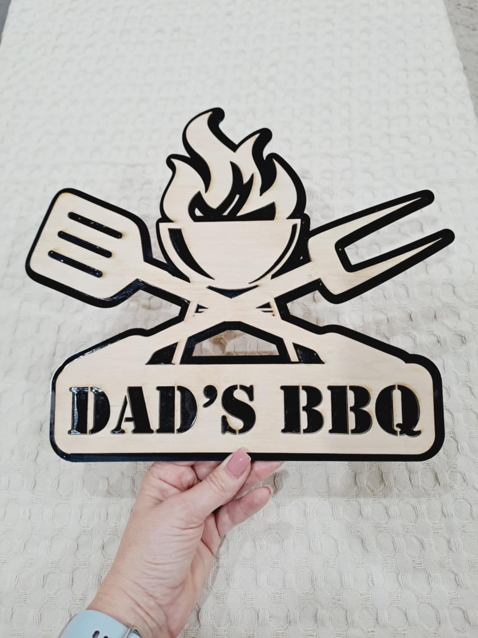 - Dual-Layer Design: Crafted from sturdy timber and sleek black acrylic, this plaque combines durability with a touch of sophistication, perfect for any BBQ setting. Adds a stylish and functional element to your outdoor space, celebrating Dad’s BBQing skills while standing up to the elements.
