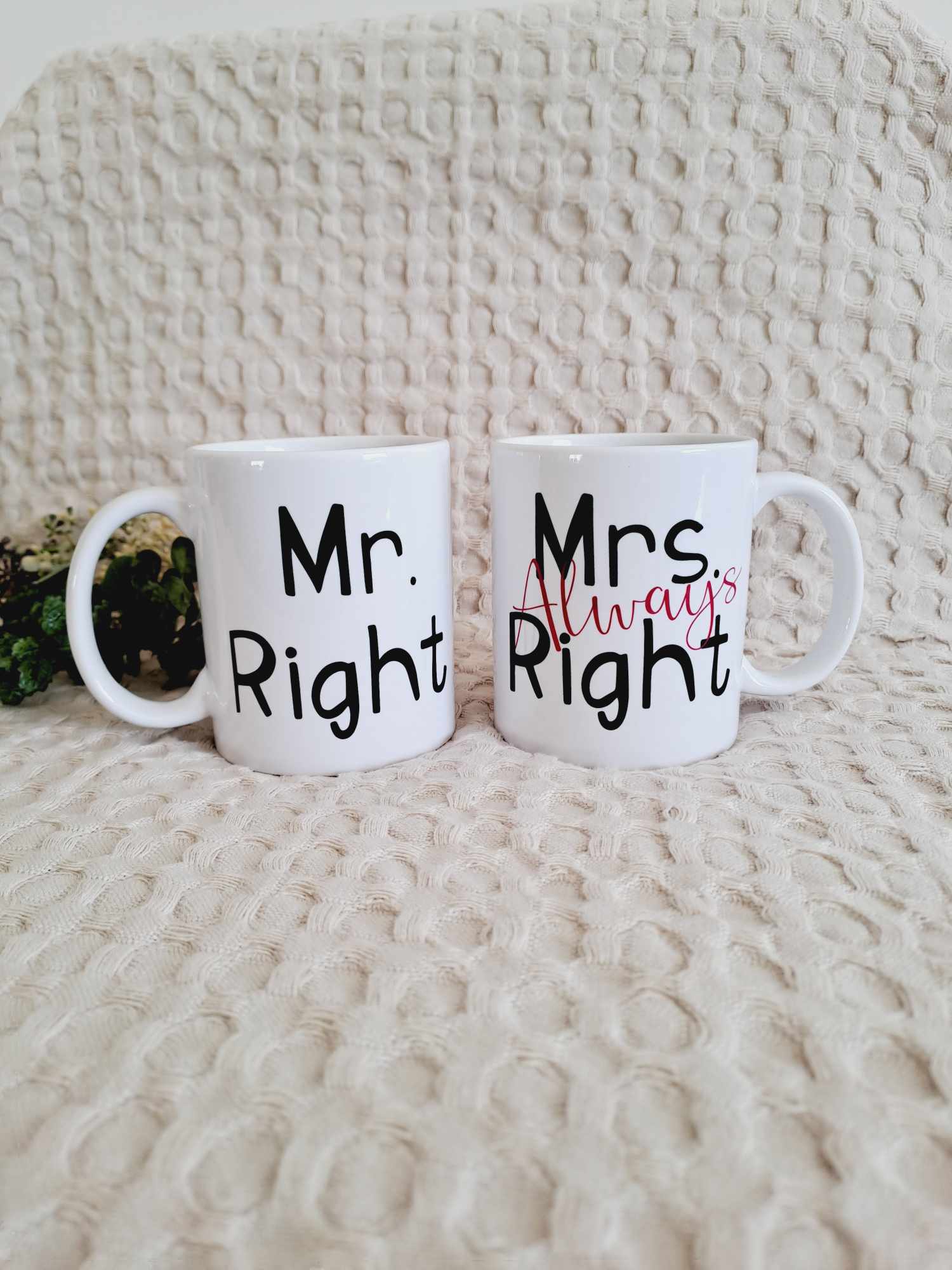Crafted with love and a sprinkle of humor, our "Mr. Right" & "Mrs. 'Always' Right" Coffee Mug Gift Pack is the perfect way to celebrate your unique bond. Whether you're treating yourselves or surprising a special couple in your life, these mugs are sure to bring laughter and joy with every sip. Because in a world where laughter is the best medicine, sharing a cup of coffee with your partner is the perfect remedy for any day and sometimes being right is just the beginning of the fun!