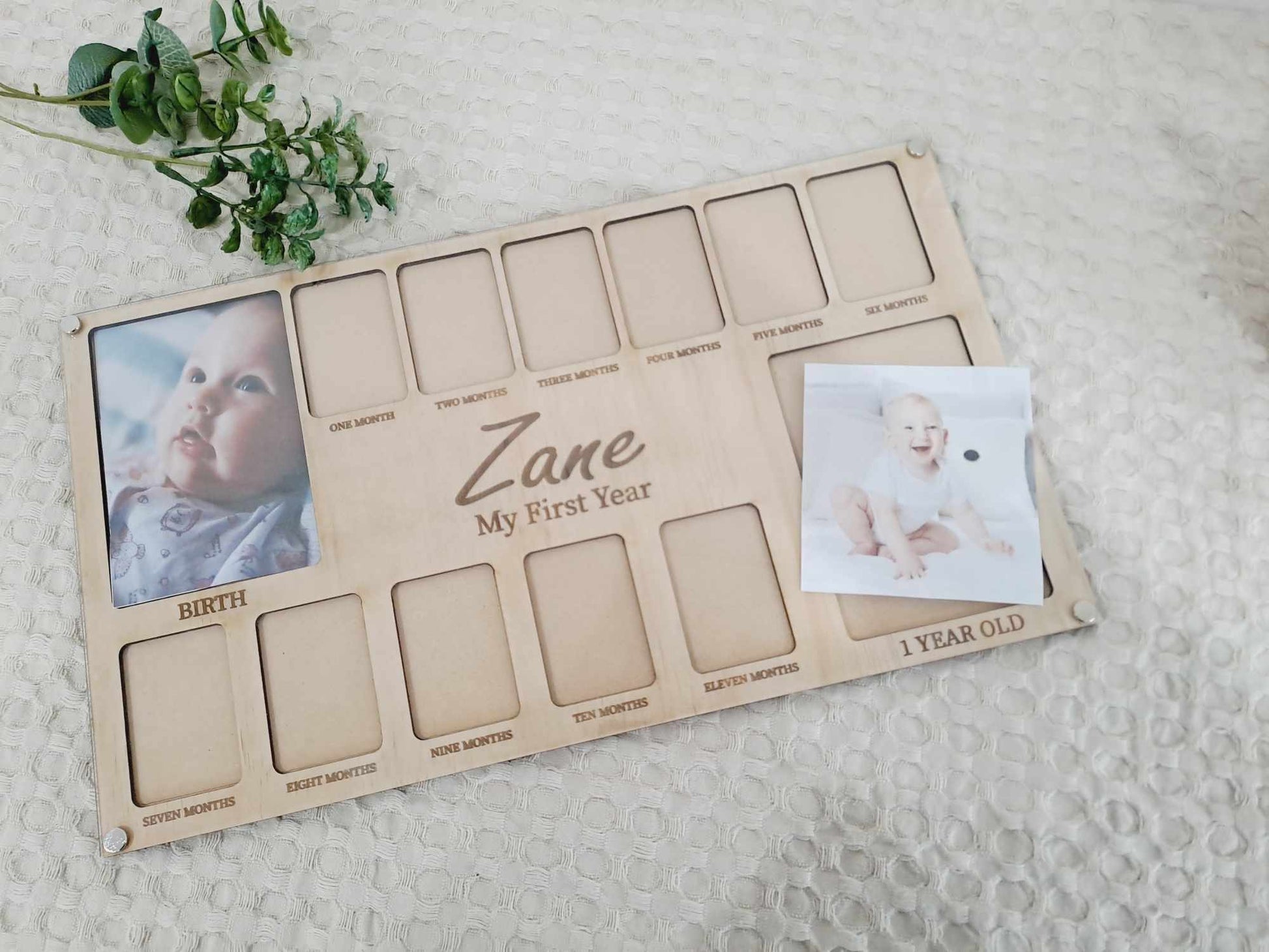 - Milestone Memories: With space for a photo each month from birth to one year old, this frame allows you to cherish and celebrate every milestone in your little one's journey. Create a beautiful visual timeline of your baby's growth and development, capturing precious memories that will last a lifetime.