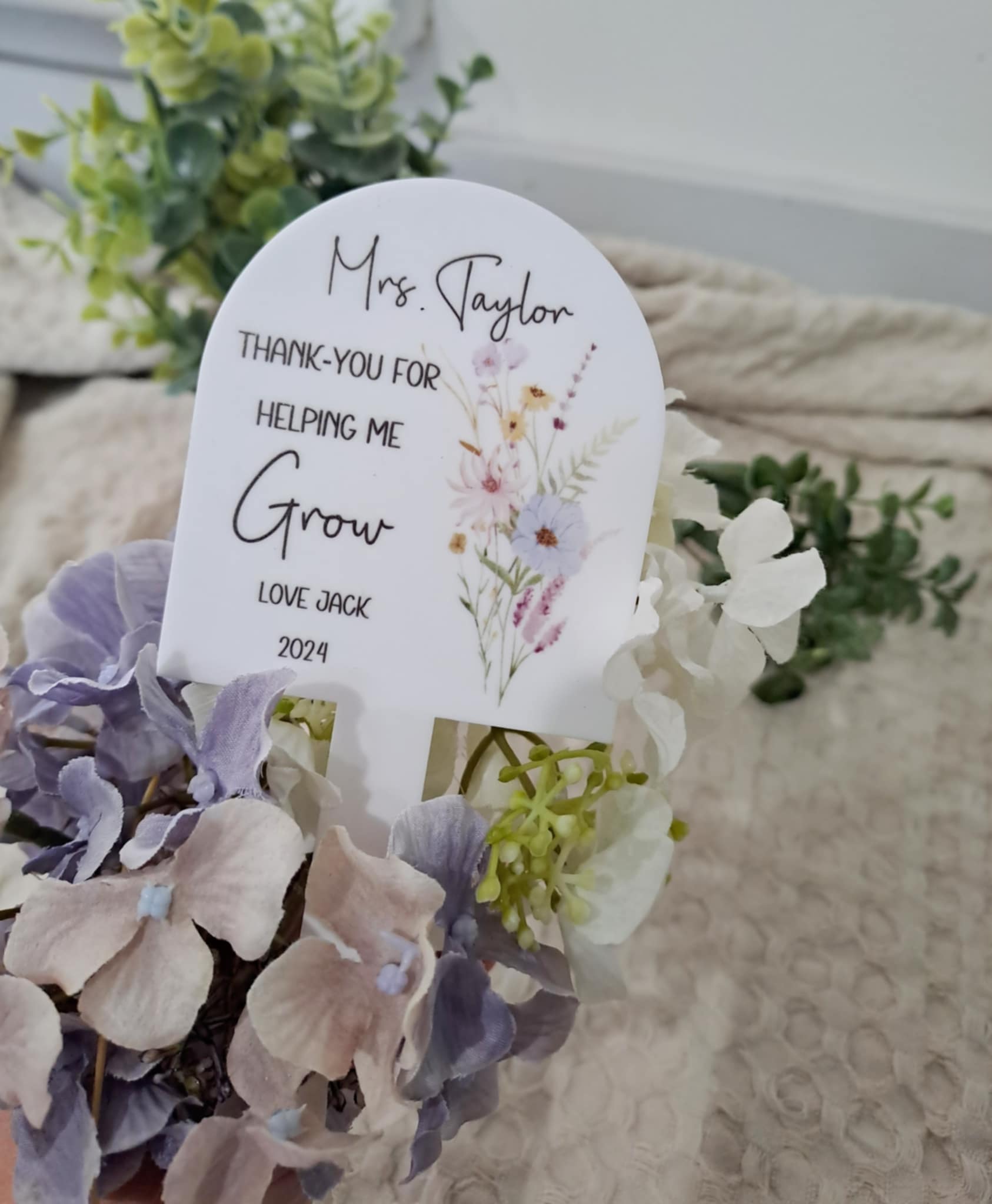Available in two charming options—engraved timber for a classic touch or UV printed acrylic for a vibrant pop of color—this planter stick adds a personal flair to any potted plant. Perfect for desks or gardens, it serves as a thoughtful reminder of the growth and inspiration they cultivate in their students.